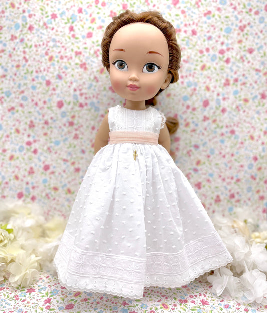 Muñeca de comunión personalizada con vestido Zoe plumeti
