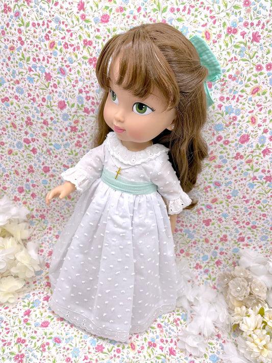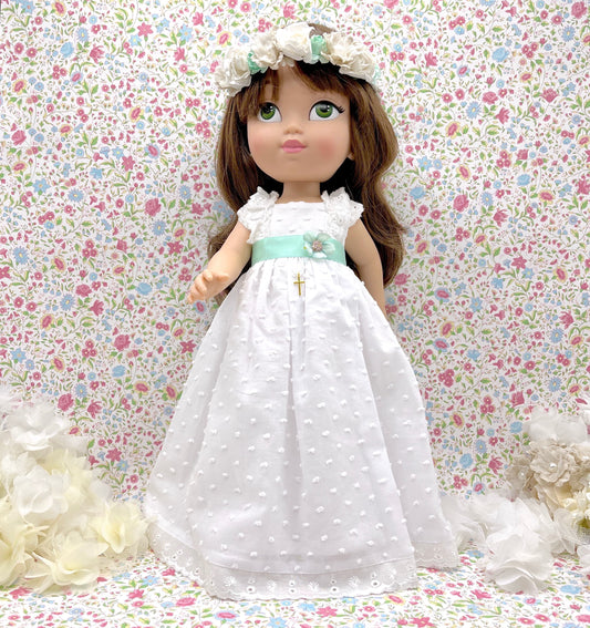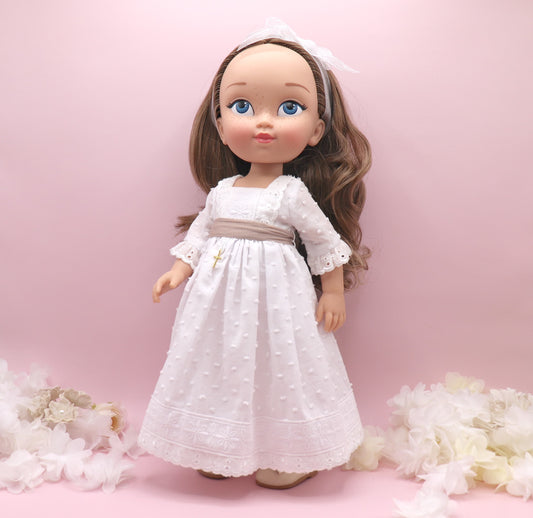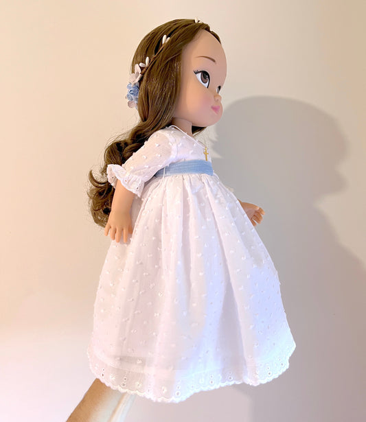 Muñeca de comunión personalizada con vestido Micaela plumeti
