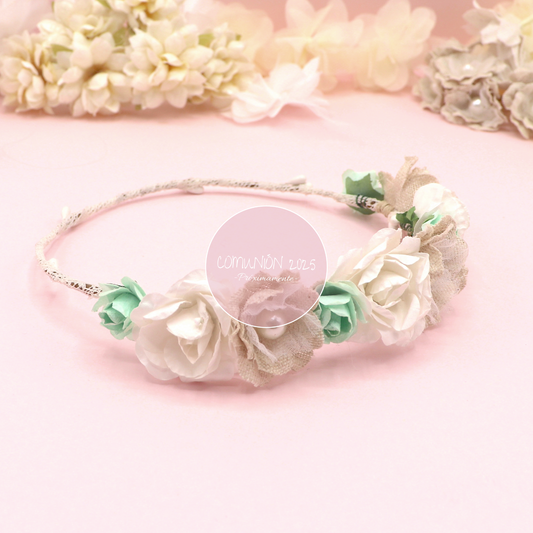 Coronita muñeca Velvet - Verde agua y crudo