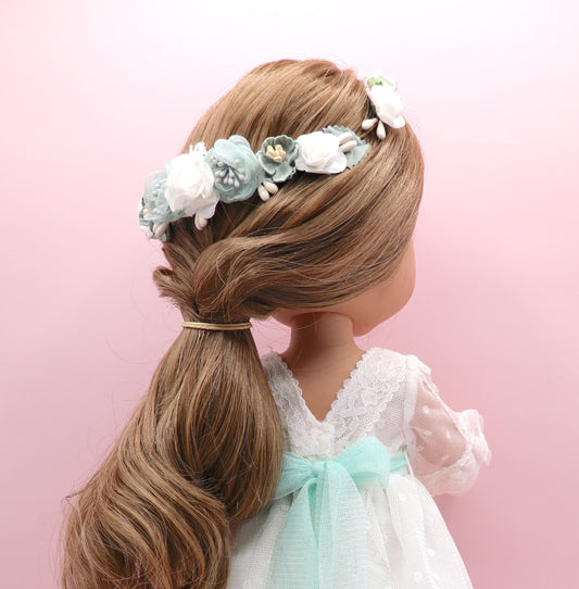 Coronita ROMANA muñeca - Celeste y agua