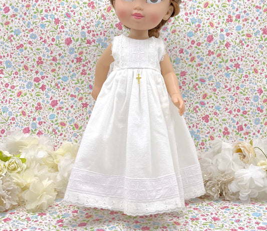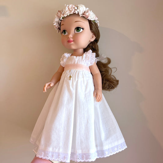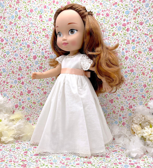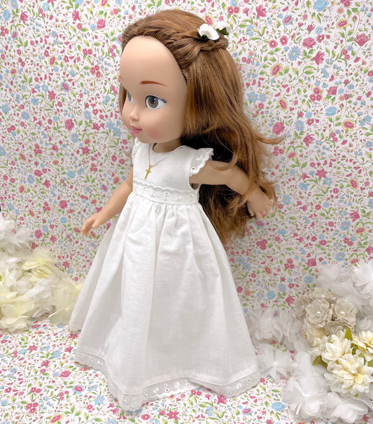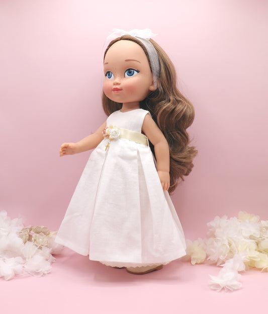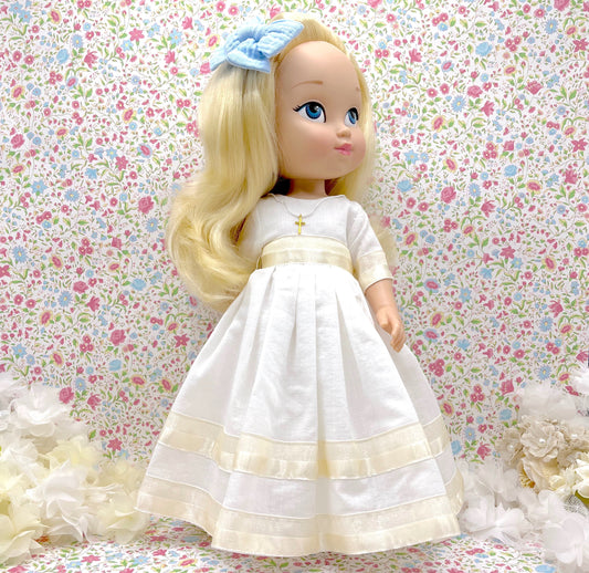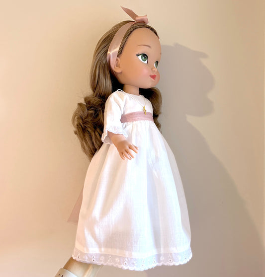 Muñeca de comunión personalizada con vestido BASE de LINO FRUNCIDO