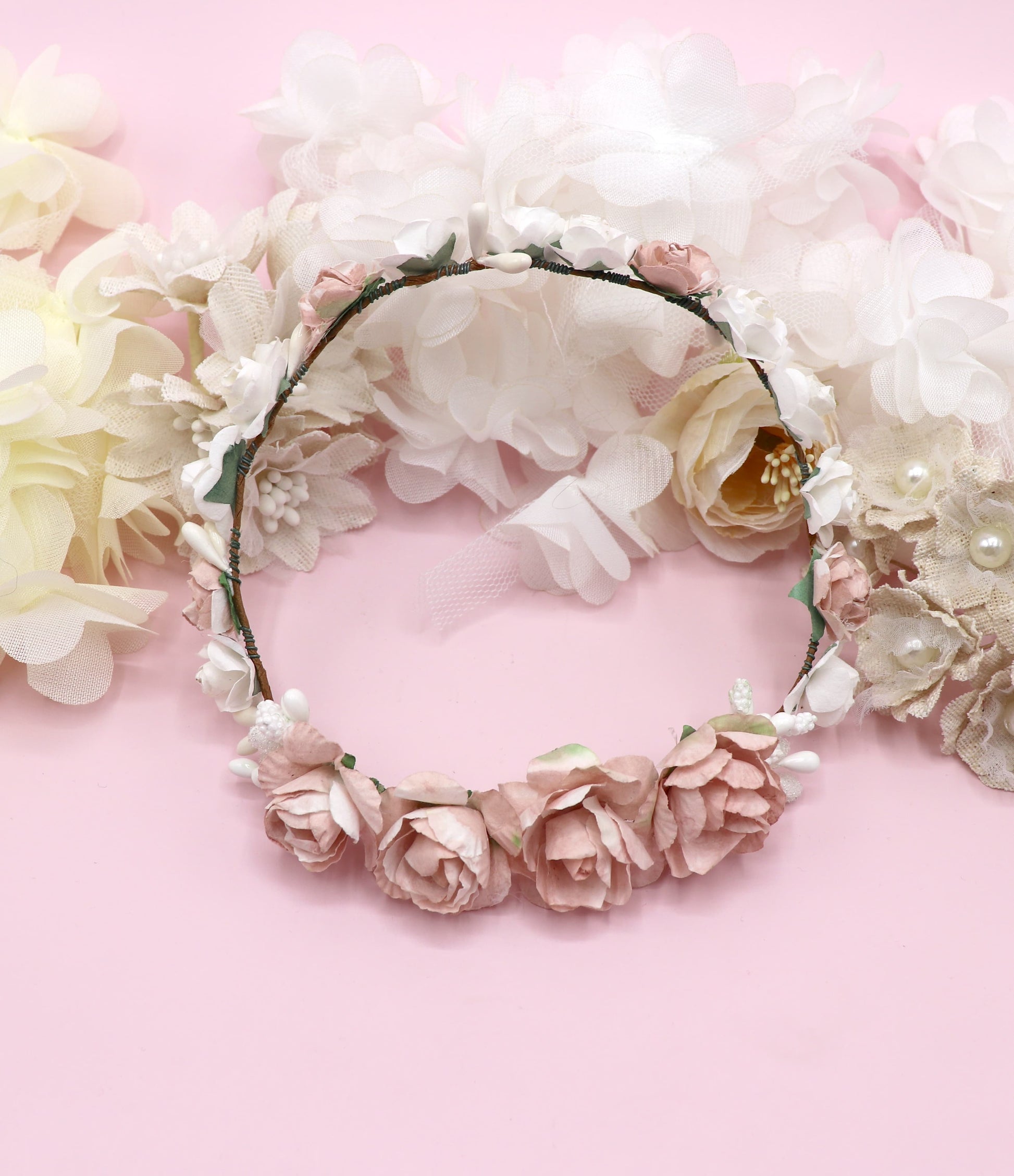 Coronita completa de flores para tu muñeca. Asegúrate de elegir hacia donde colocamos las flores grandes.