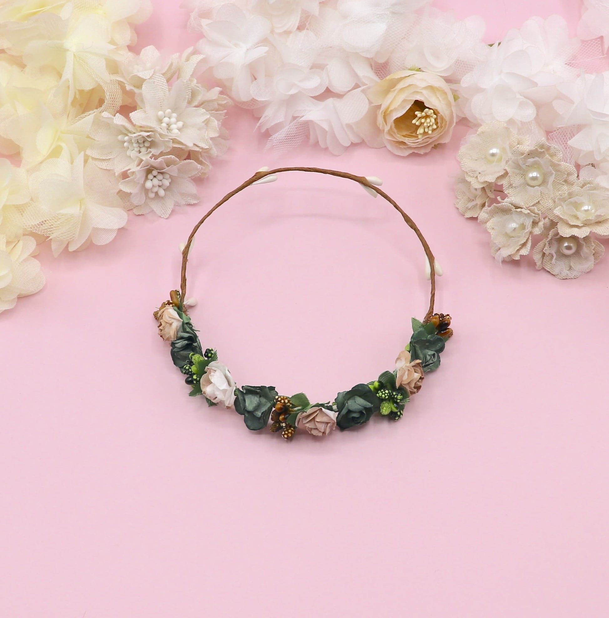 Coronita de flores tamaño pequeño para tu muñeca. Asegúrate de elegir hacia donde colocamos las flores.