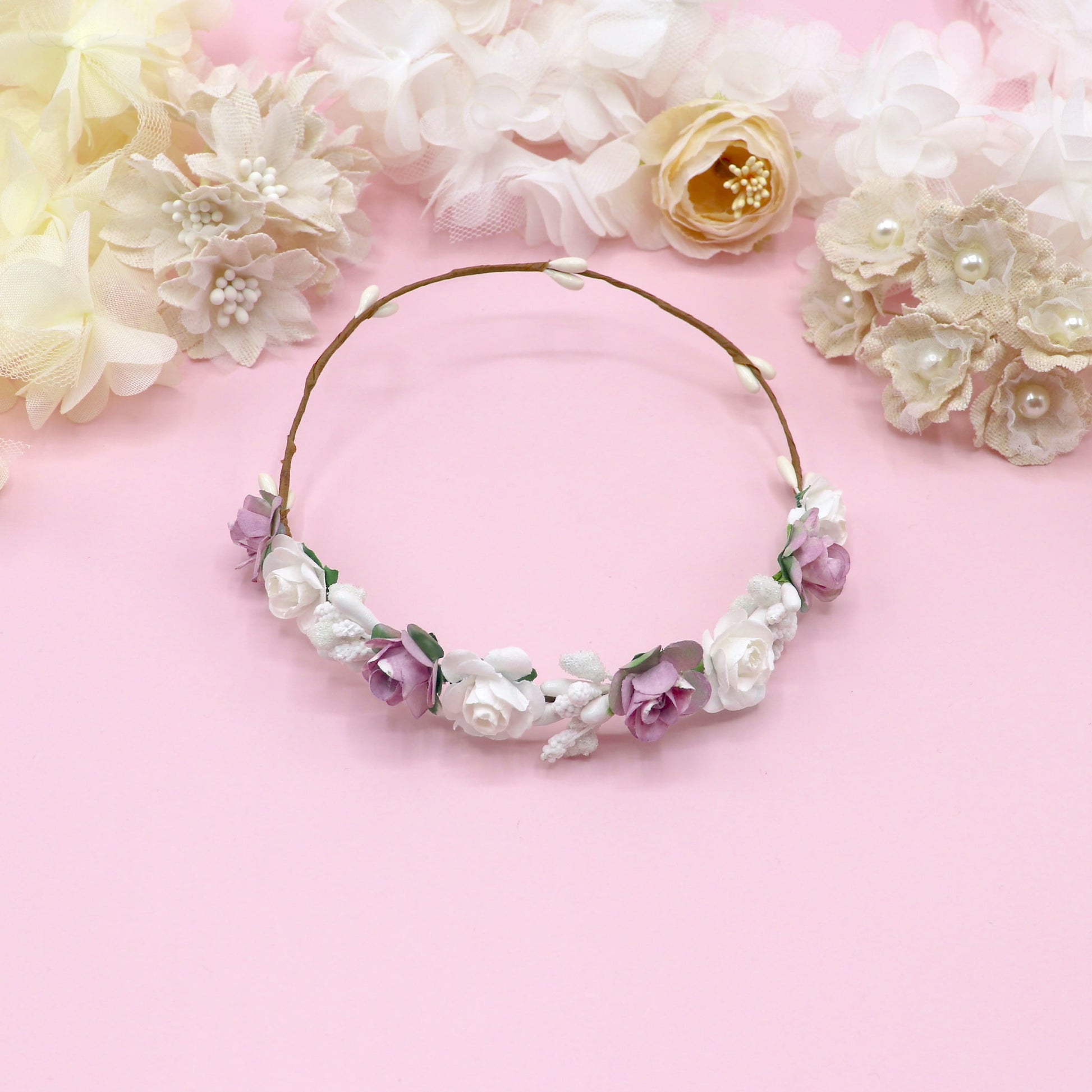 Coronita de flores tamaño pequeño para tu muñeca. Asegúrate de elegir hacia donde colocamos las flores.