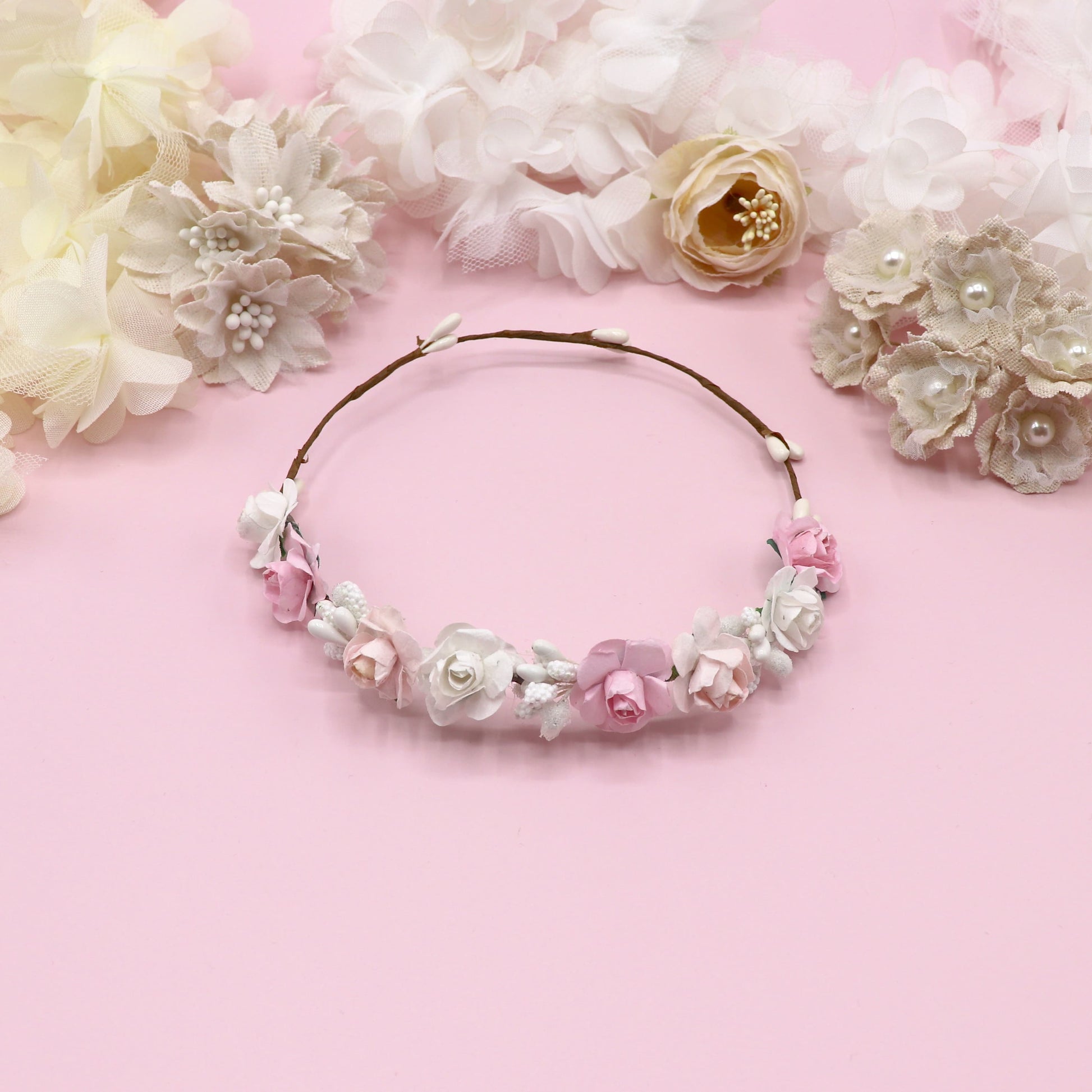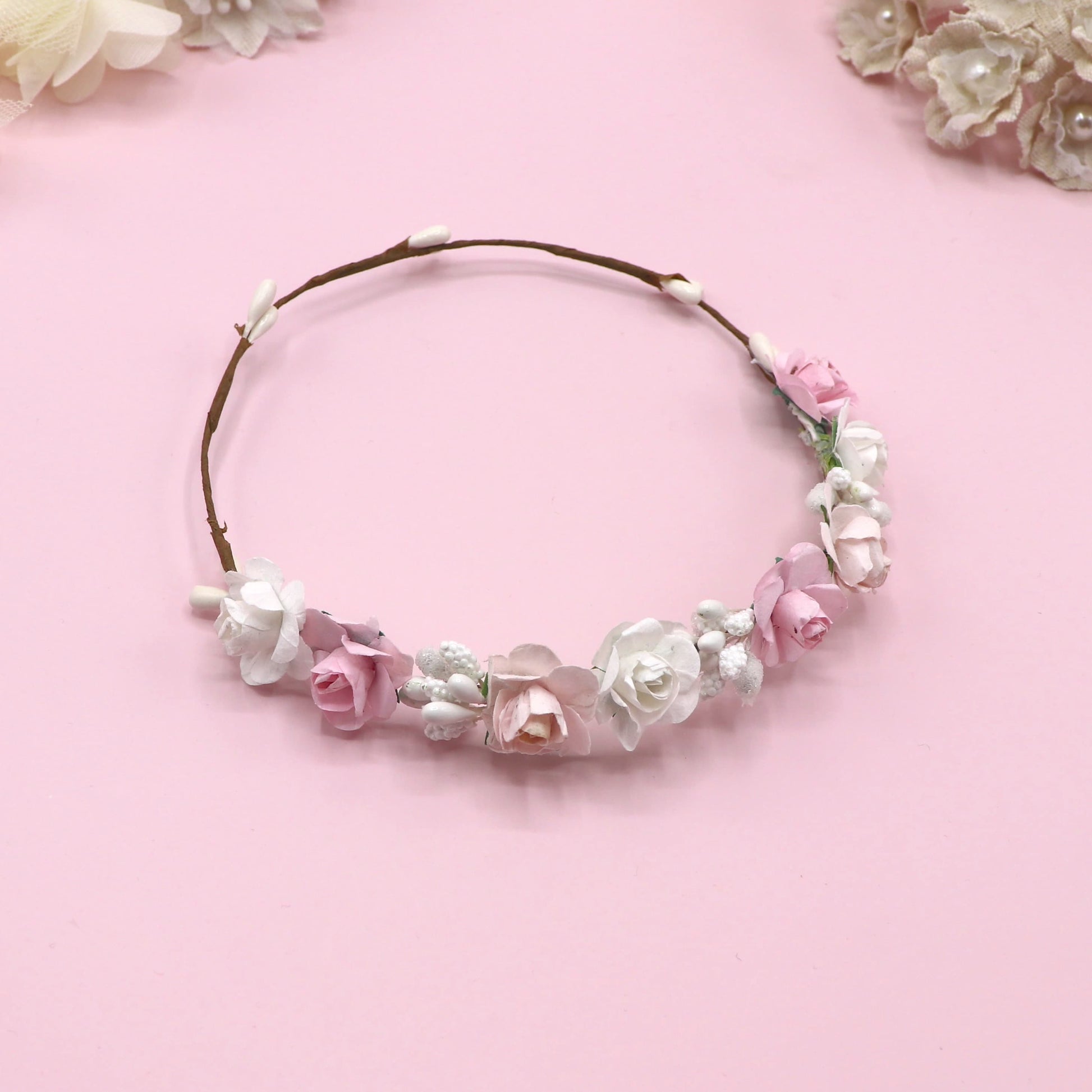 Coronita de flores tamaño pequeño para tu muñeca. Asegúrate de elegir hacia donde colocamos las flores.