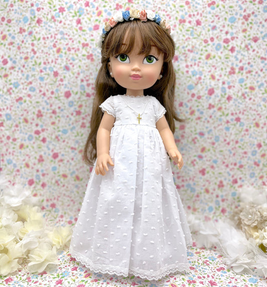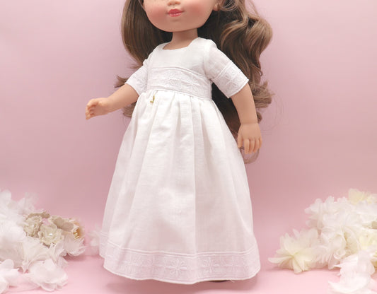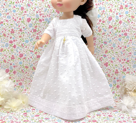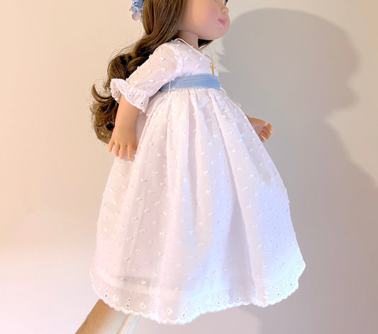 Vestido de comunhão boneca Cristina plumeti - SEM BALADO NO PESCOÇO