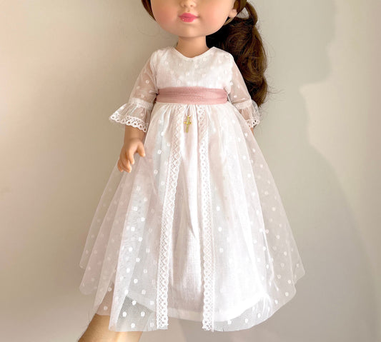 Vestido de comunhão da boneca Constantine