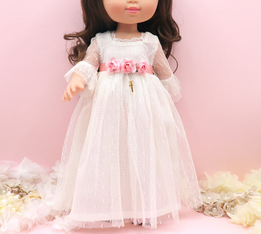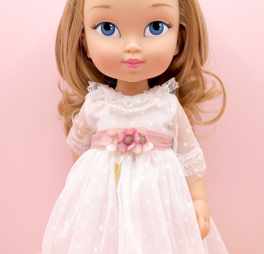 Vestido de comunhão da boneca Olympia Rosa
