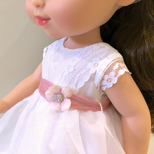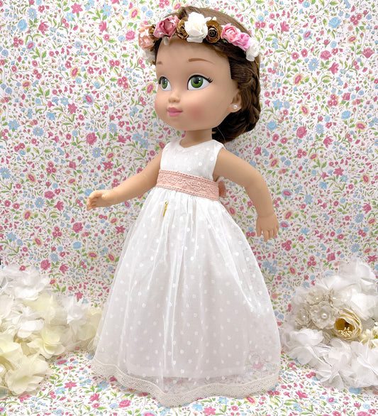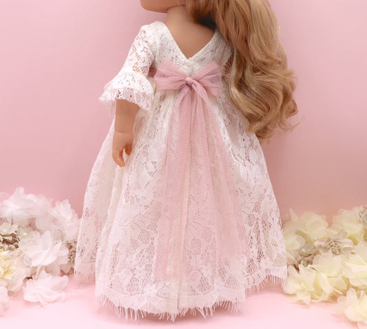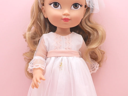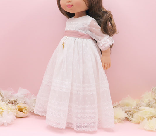 Vestido de comunhão boneca Atenea com renda rosa