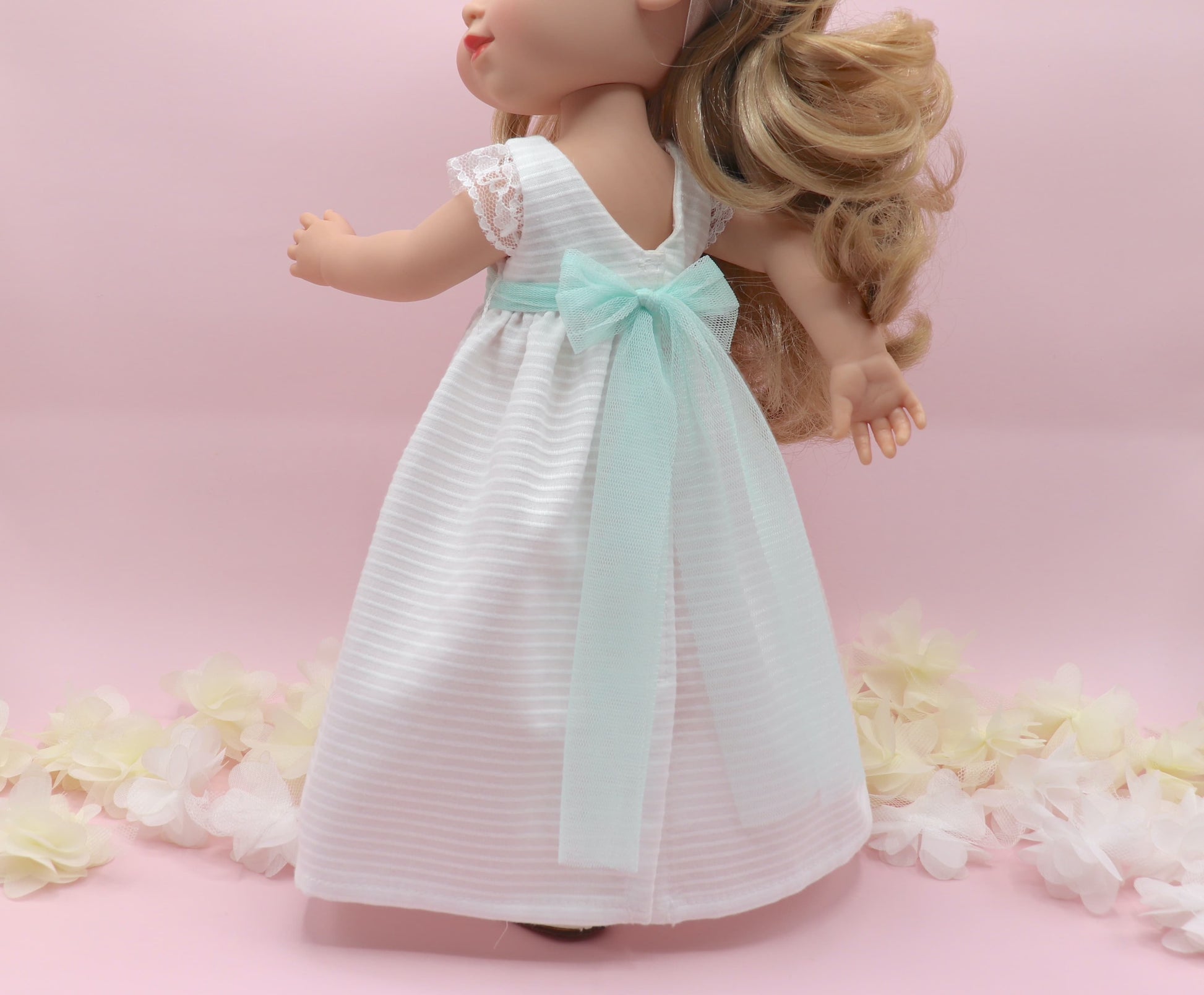 Inclui este vestido de boneca personalizado à sua escolha. Você também precisa dos sapatos? Selecione-os aqui mesmo.