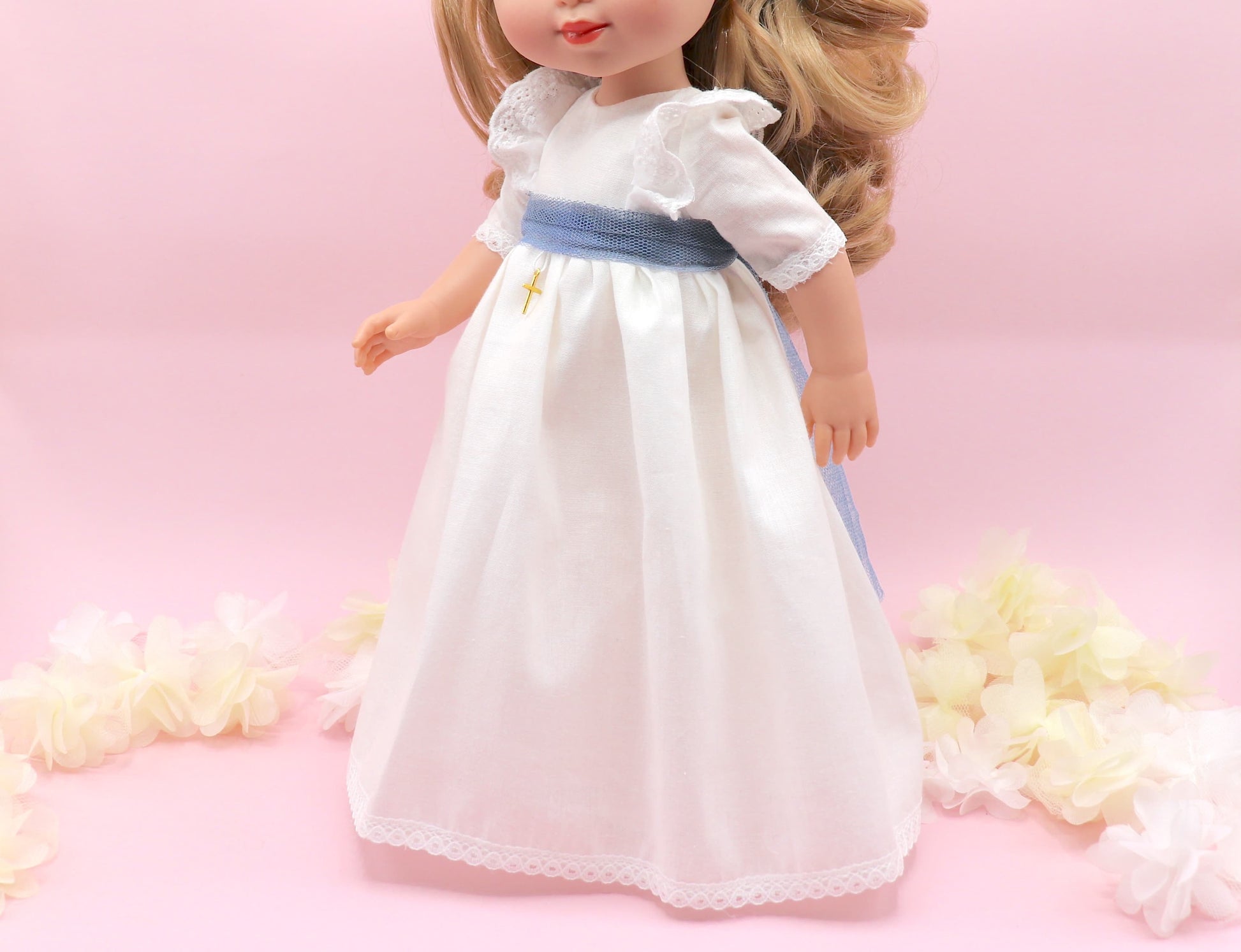 Vestido de comunhão boneca Cristina plumeti - SEM BALADO NO PESCOÇO